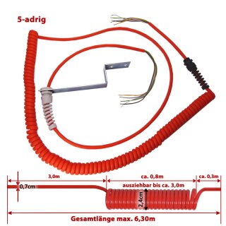 5-adriges Spiralkabel "Industrie" Wendelleitung, Gesamtlänge max 6,30m