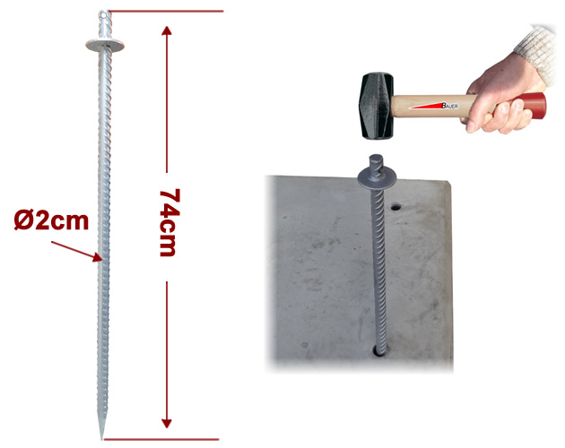 Fertigfundament - Erdanker einschlagbar als zusätzliche Befestigungsmöglichkeit