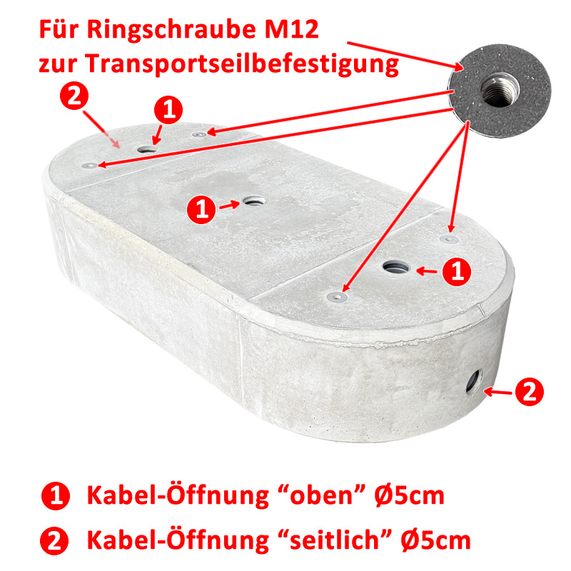 Fertigfundament | Verkehrsinsel | 120 x 60 x 25cm abgerundet