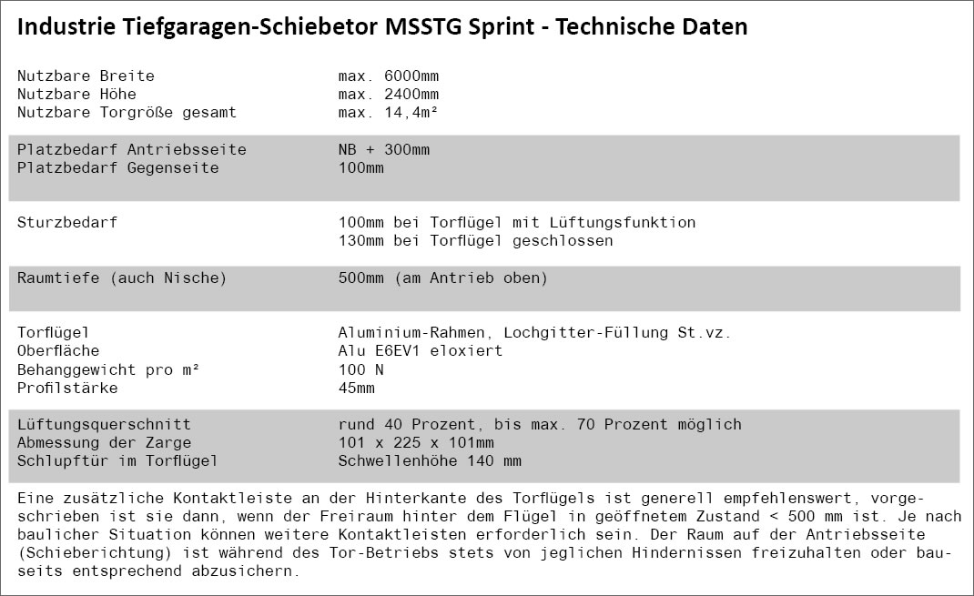 Industrie Tiefgaragen-Schiebetor MSSTG Sprint - Attraktiv und flott