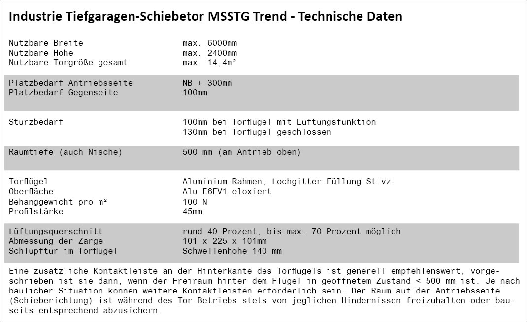 Industrie Tiefgaragen-Schiebetor MSSTG Trend