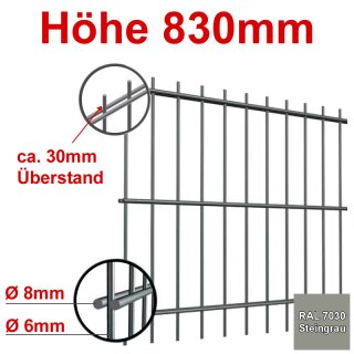 Stabgitterzaun - Zaunelement Höhe 830mm, Breite 2500mm - Steingrau 7030